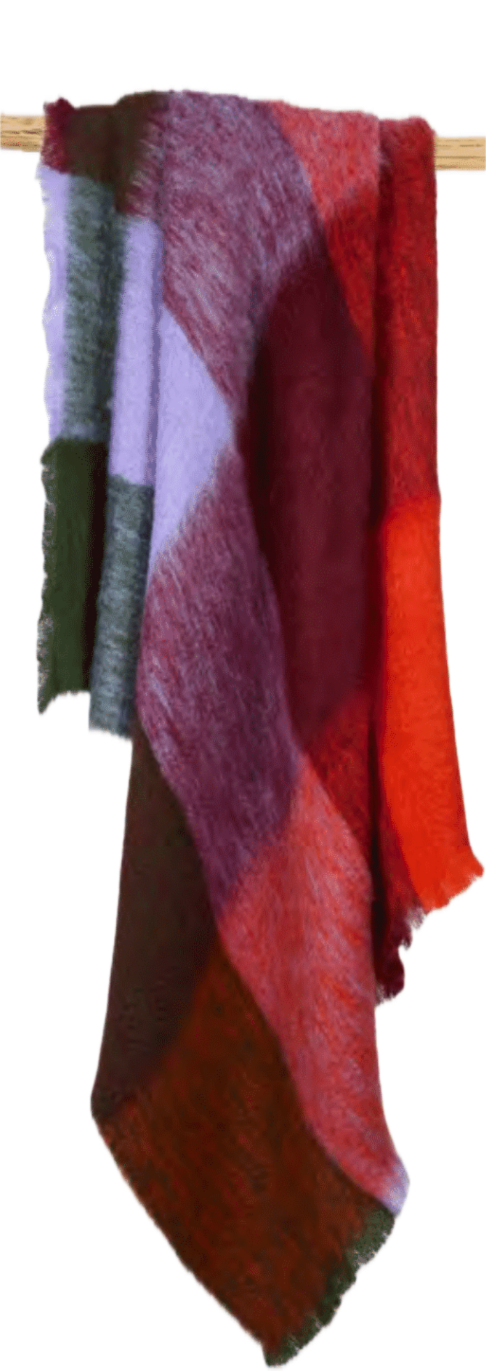 Multiple of beautiful color mohair throw from Ezcaray Mantas is made of 73% mohair and 27% wool. measures 51×79 inches. Made in Spain. Dry clean only. Made In S